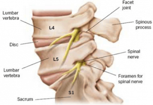 Low back pain often occurs in the five vertebrae (L1 to L5) that make up the lumbar, or lower, region of your back. This area supports the majority of the weight of your upper body. There are spaces between these vertebrae that are filled with round, jelly-like pads that are called intervertebral discs. These are like shock absorbers for your back. They provide cushioning for the bones in your spine, allowing you to move around. There is a junction between your vertebrae that is stabilized by the facet joint. There are also ligaments that hold the vertebrae in place and tendons that attach your back muscles to your spinal column. Finally, there are 31 pairs of nerves that start at the spinal cord and control your movement, sending signals to your brain to help you move and feel.